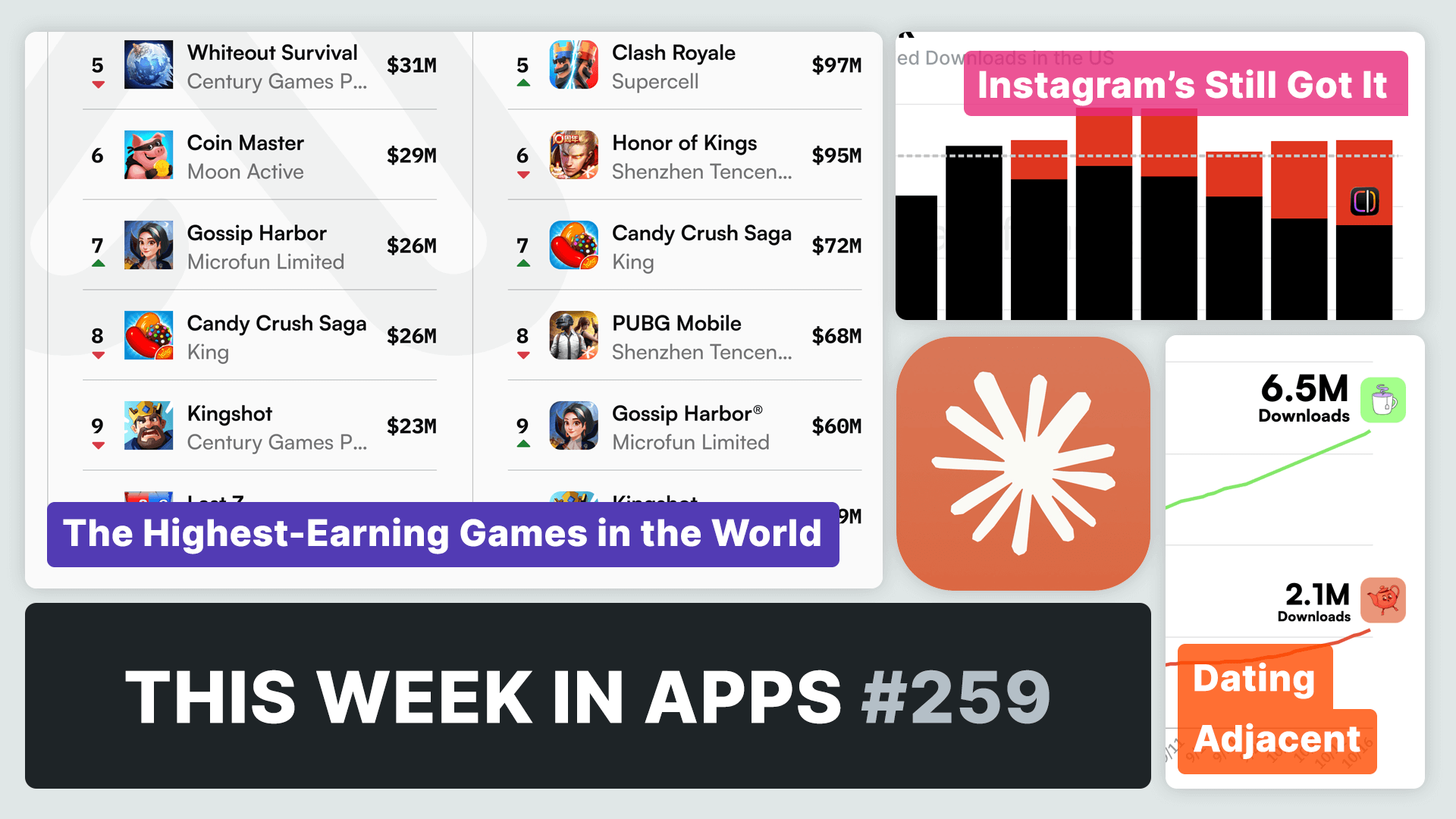 #259 - Instgram is hurting TikTok, dating-adjacent Tea is a runaway success, Claude is behind but still has an ace up its sleeve, and the most downloaded and highest-earning mobile games in September.