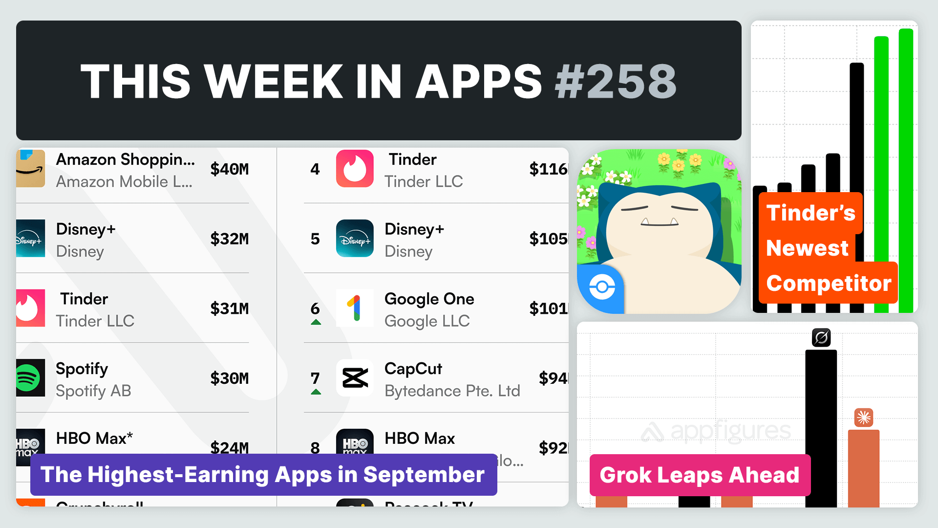 #258 - Pokémon Sleep celebrates its second birthday but was it a success? The most downloaded and highest earning apps in September are... intersting. Grok leaps ahead of the pack, and more.