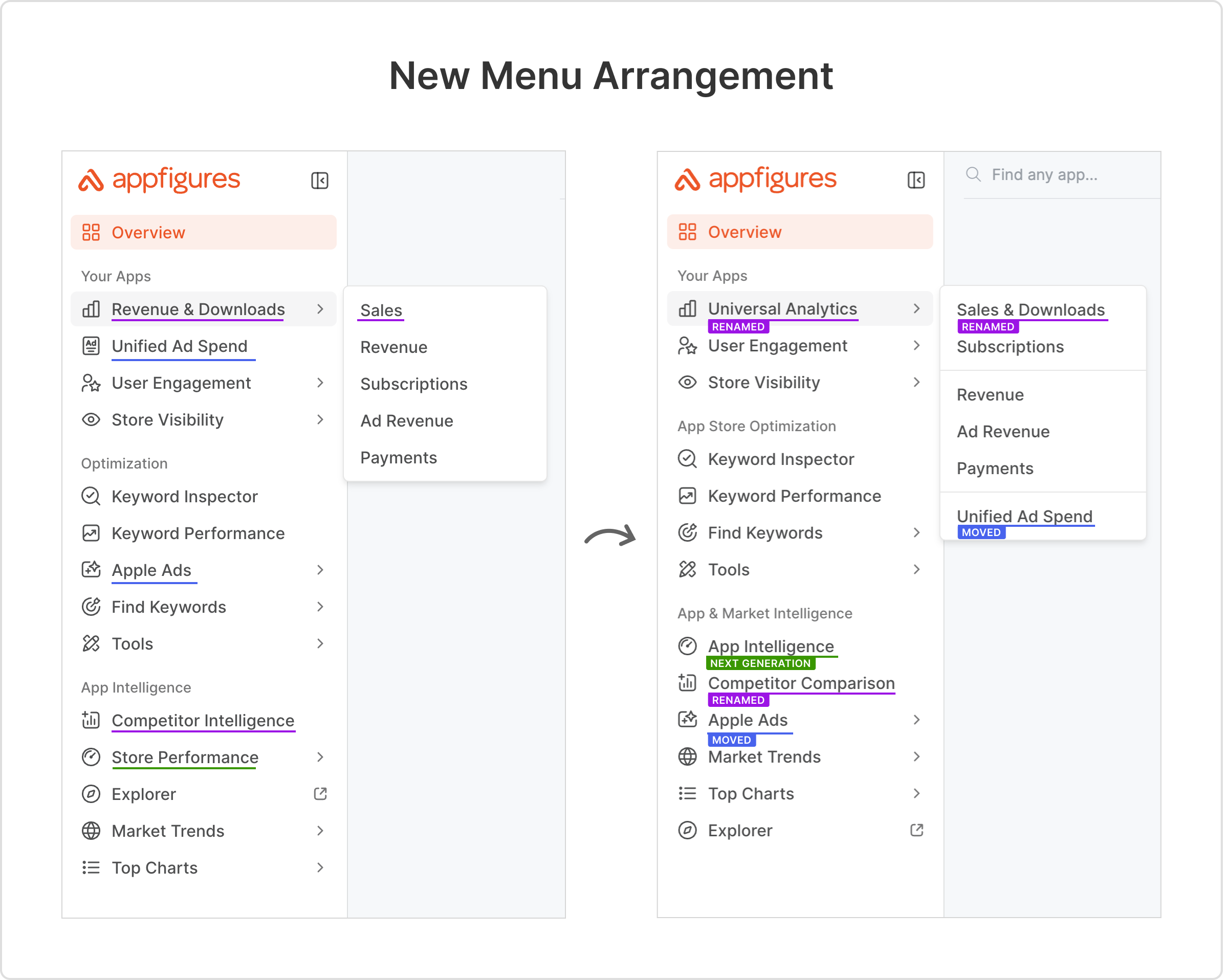 Appfigures Dashboard Navigation Changes (Sep 24, 2025)